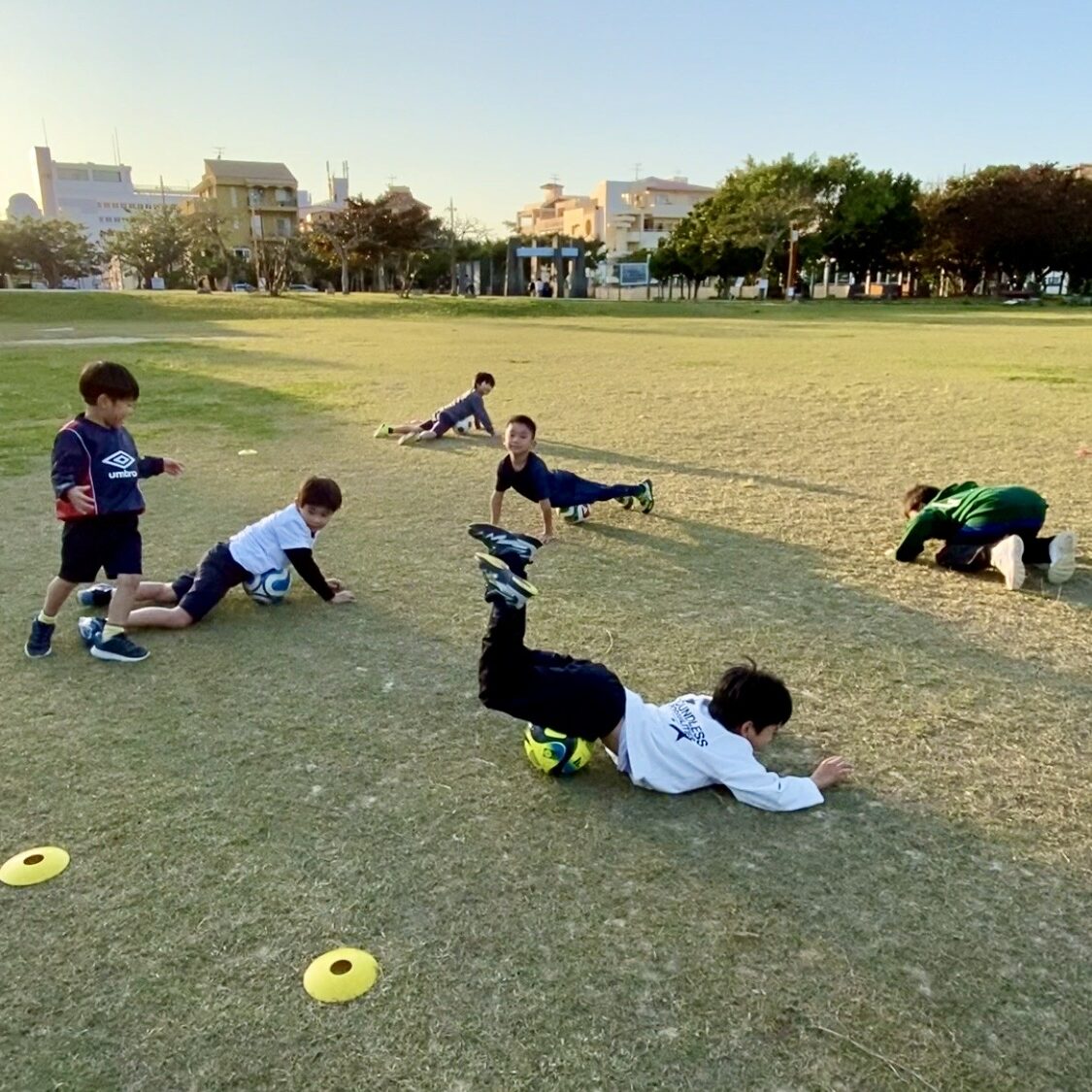 おにごっこやボールあそびを基盤としたメニューが中心。ドリブル練習も、パス練習も、プレイフルではワイワイ楽しいあそびに変身♪完璧な技術力や勝ち負けより、「楽しい!」「また来たい!」と思えることを大切にした遊び感覚のサッカースクールです。